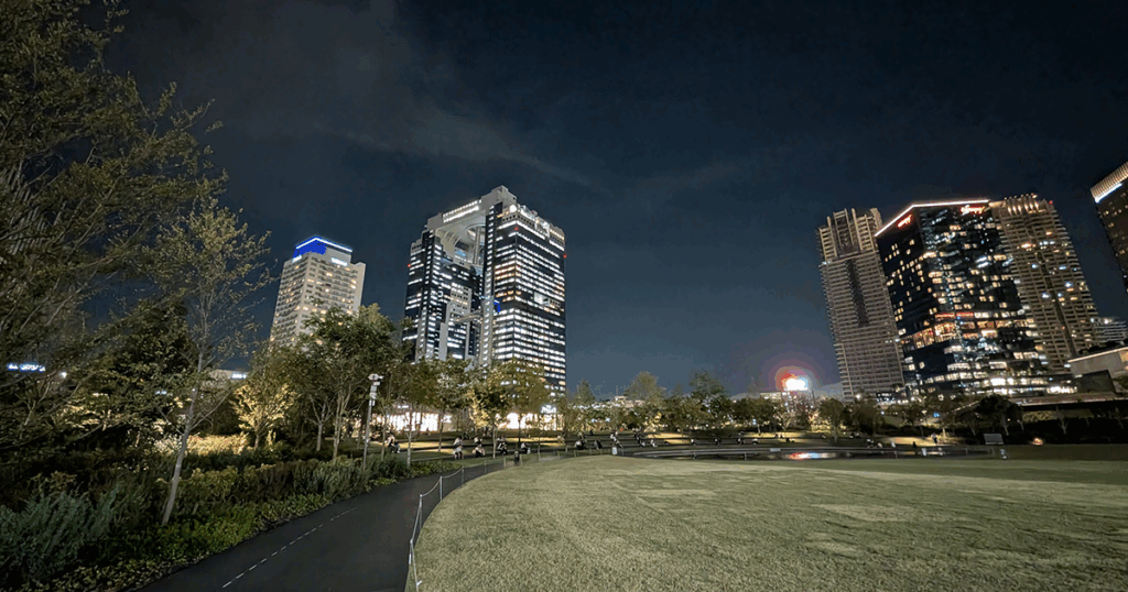 特に夕方の時間帯は、西日が芝生に柔らかな光を投げかけ、都心とは思えないほど穏やかな雰囲気に包まれます。仕事で疲れた心と体を癒してくれる、まさに都市のオアシスといえる空間でした。皆さんも忙しい日常の中で、こうした癒しの時間を大切にされているのではないでしょうか。