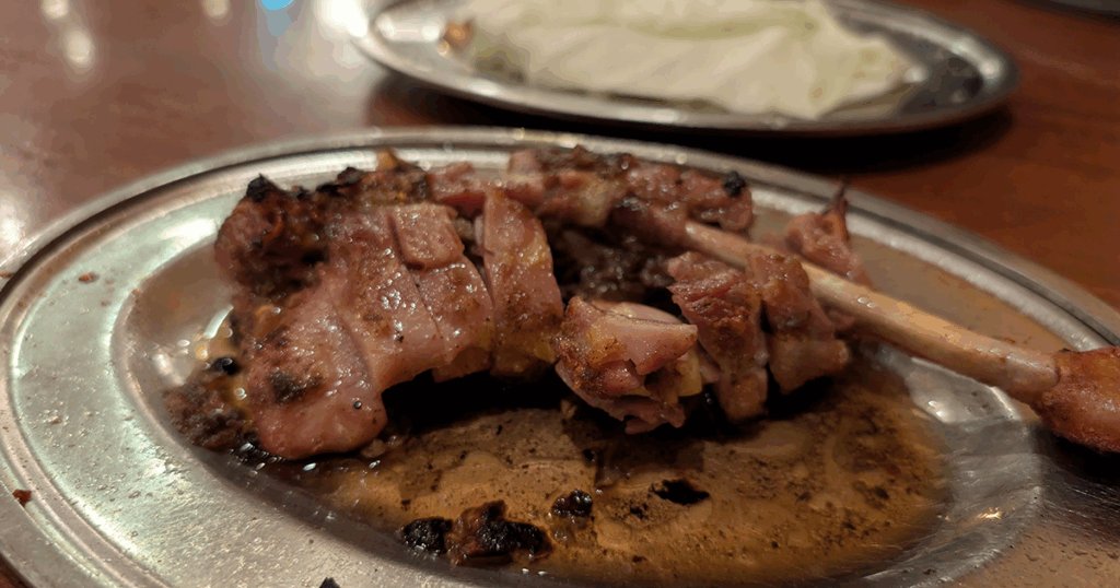 今回選んだのは親鳥。若鳥に比べて歯ごたえがあり、噛むたびに肉の旨味とスパイスの香りが広がります。鉄皿に残る肉汁と脂は、後述するむすびとの相性が抜群で、一鶴らしさを最も強く感じられる一皿でした。